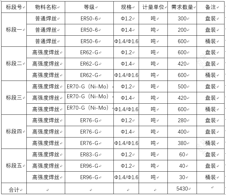 1.采购内容:2021年2月-2021年6月焊丝招标采购